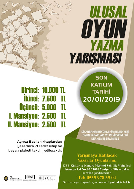 Diyarbakır Büyükşehir Belediyesi ile OYÇED işbirliği ile “Ulusal Oyun Yazma Yarışması” düzenliyor.