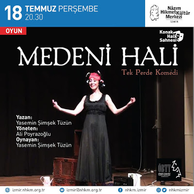 Oyun 18 Temmuz Perşembe 20:30’da İzmir Nazım Hikmet Kültür Merkezi’nde izlenebilir.